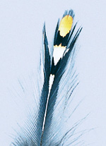 ウェットフライのウイング、ストリーマーのウイング材として使います。個人的には、テレストリアルのレッグなどにも多用しています。数本を束ねてボディに巻くと、ハールと違う輝きがあり、かなりコガネムシっぽい感じです。有名なパターンはアレキサンダー |