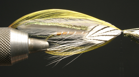 クレストの巻き留め位置が決まったら、先ほどと同様に一度軽く仮止めして位置を確認し、ずれないようにさらに何回転かで巻き留める。