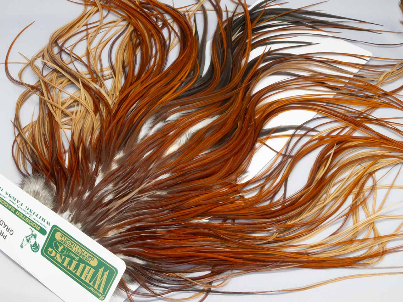 ホワイティングファームで養鶏される、ヒーバートハックルは個体ごとの雰囲気が変わるナチュラルカラー。ホワイティングと比べるとヒーバートは個体が大きく、こちらは12〜16番ぐらいが沢山取れるハックル。