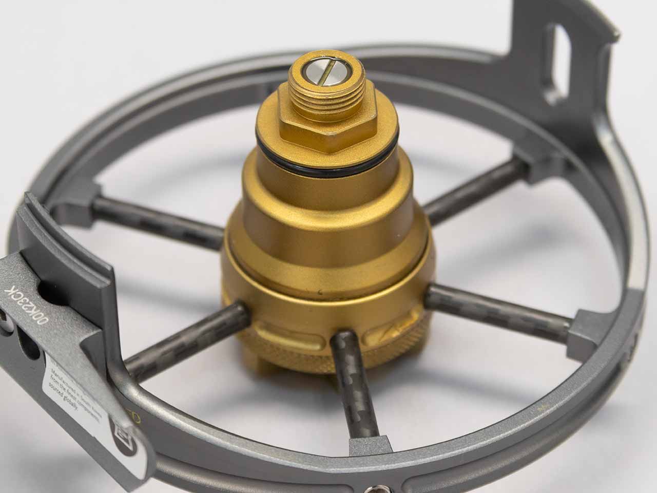 ゼイン・カーボンは、センターシャフトをカーボンで支えられた、ソルトウォーターフライリールです。密閉式ディスクドラグ内蔵の軽量なラージアーバー・リールで、340°調整可能なドラグコントロールは、魚の急激な引きに対してドラグシステムが機能し、素早く細かな調整(リール外周に時計のようなメモリがある)が可能です。その強靭なドラッグは10ポンド以上の制御力を持っています。