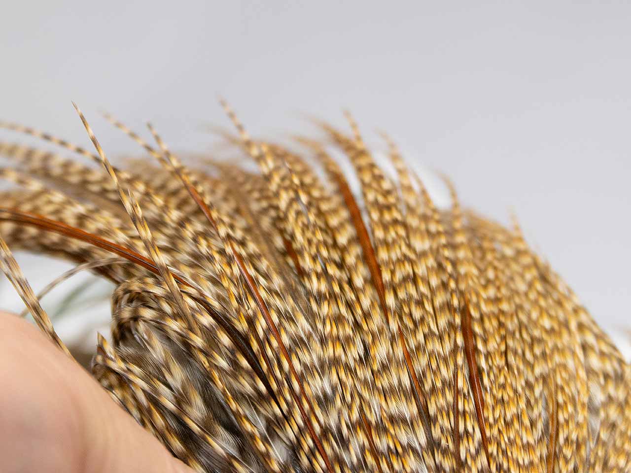ヒーバートの特徴は鶏の大きさがホワイティングよりも一回り大きい事、それに淡い色合いのナチュラルカラー中心。今回入荷したグリズリーバリアントは名前の通りグリズリーの変わり種で、クリーに近くブラックの部分が少し薄いもの。根元がブラックとブラウンが混在するので、よりリアルさが増すカラーと言えます。ここ数年ヒーバートのハックルはホワイティング以上に入荷が少ないので、商品を見てビビッと来た方は、迷わずポチッと押すことをお勧めします。