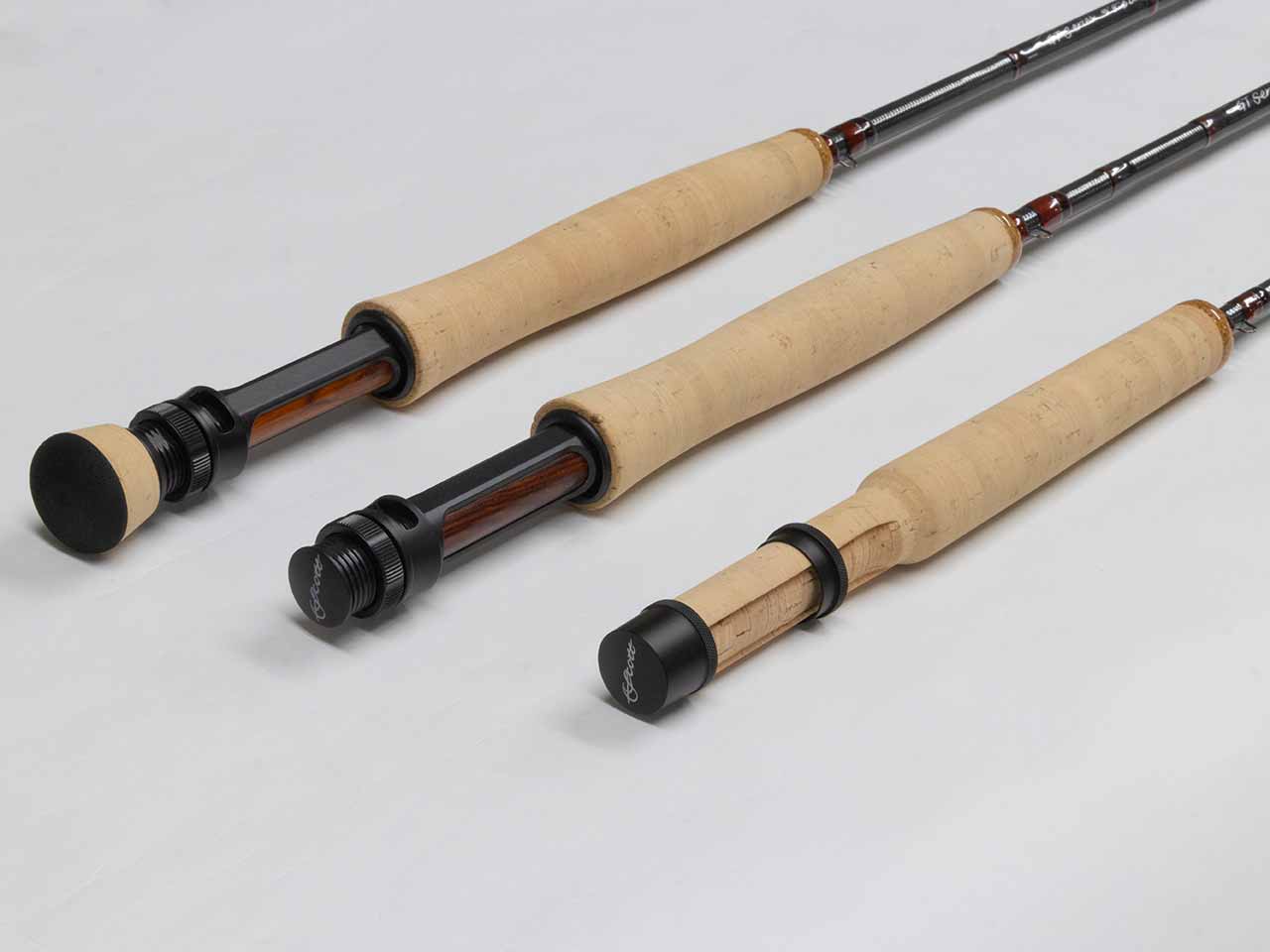 GTロッドはタイプ3のハードコートを施した圧延アルミニウムのリールシートに美しいココボロウッドのインサート、最高品質であるフロアグレードのコルクグリップを採用しています。ガイドにはカラミ防止のチタニウムフレームのジルコニアストリッピングガイドと、“Snake Brand”のユニバーサルスネークガイドを使用しています。その他の細部−メジャーリングラップやアライメントドットなどももちろんついています。それぞれのGTロッドはコロラド州モントローズにあるScottの工房で1本1本、懇切丁寧に作り上げられています。各モデルの詳細