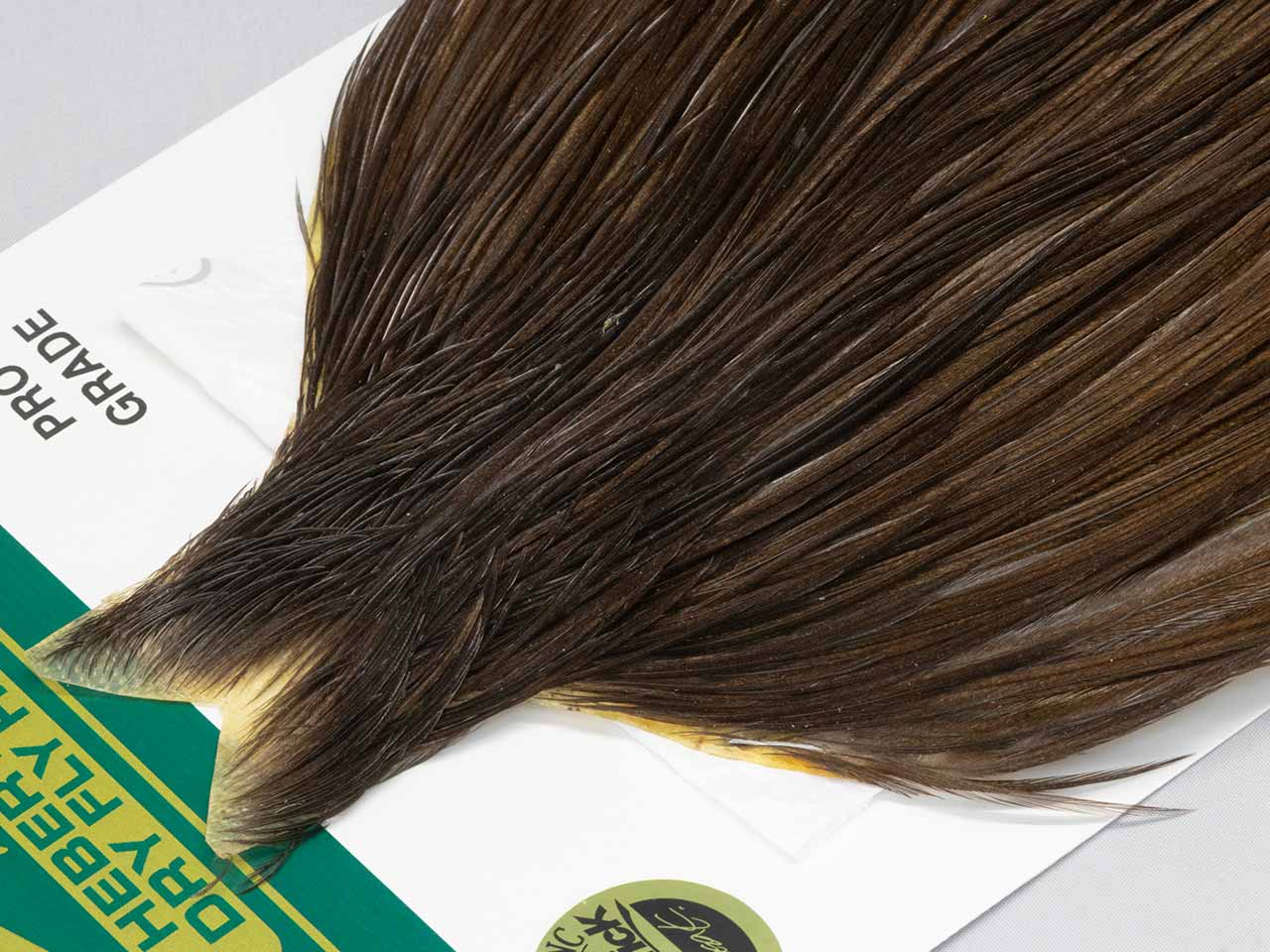 ヒーバートの特徴は鶏の大きさがホワイティングよりも一回り大きい事、それに淡い色合いのナチュラルカラー中心。今回入荷したバードダークグレーダンはブラックよりもややグレーがかっており、甲虫類などのカラーをリアルに表現できるカラーだと思います。ここ数年ヒーバートのハックルはホワイティング以上に入荷が少ないので、商品を見てビビッと来た方は、迷わずポチッと押すことをお勧めします。