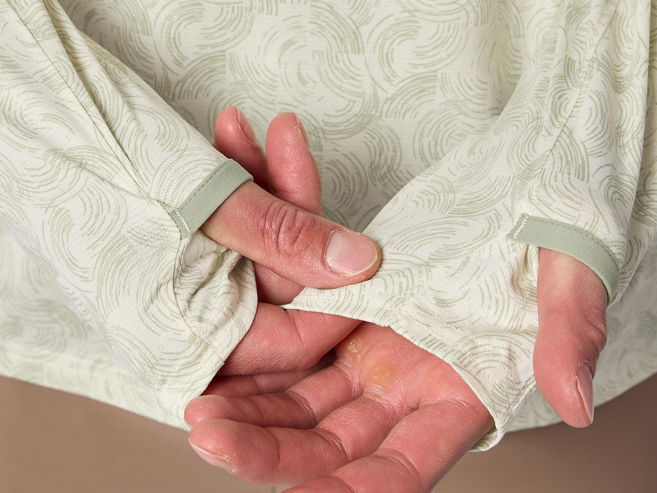 ソーラーフレックス®クルーは動きやすさを重視したUPF50+の構造で、暑い日のパフォーマンスを向上させ、手の甲の日差しまでをしっかりカバー(センターフィンガーループ付)します。