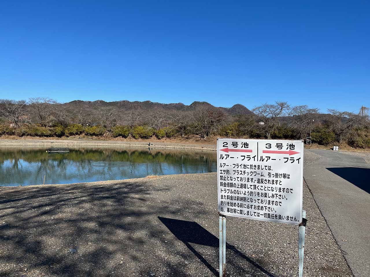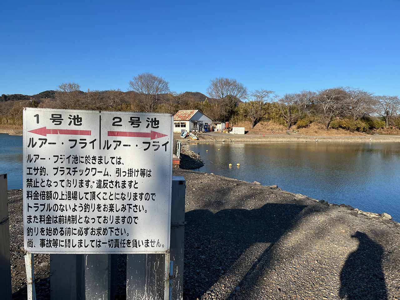 着いてみれば3号池には水が流れず閉鎖。営業しているのは1号と2号池のみ。おまけに水位も相当低いので、水辺に立ってしまうとバックキャストで地面を時折叩いてしまう事が判明。