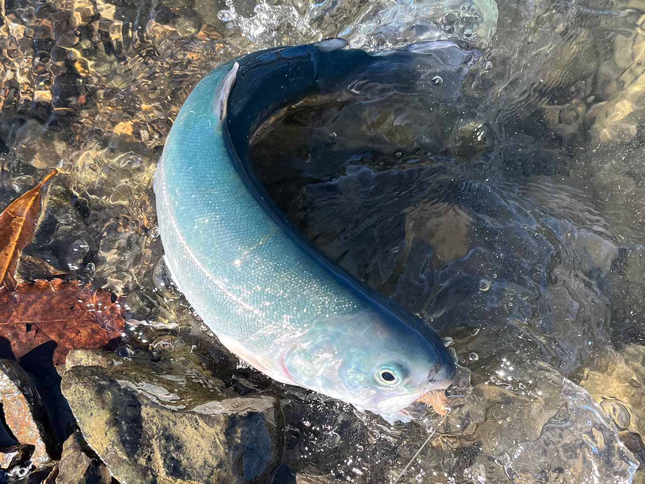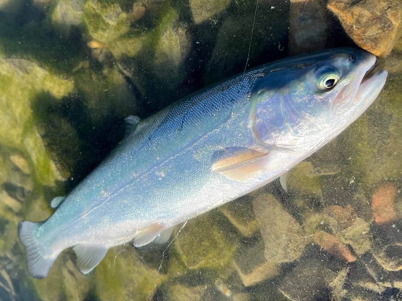 お魚は塩焼きサイズよりも一回り大きいのが中心。グリーンバックの個体が多かったです。フライはタンカラーのMSCパターンが良かったのですが、手元のそのカラーが底をついた時点でアタリが減りました。