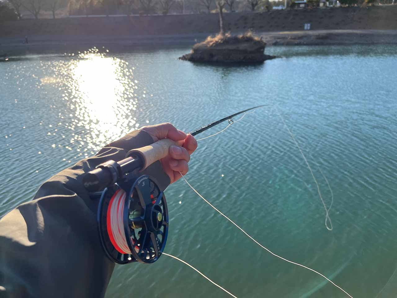 風が吹き始めたので、1号池にある島周りへ移動。フローティングラインは風に流さてラインが張り、アタリが取りやすくなる。後半はあまり沈めずに一定のスピードでリトリーブすると喰いが良かった。
