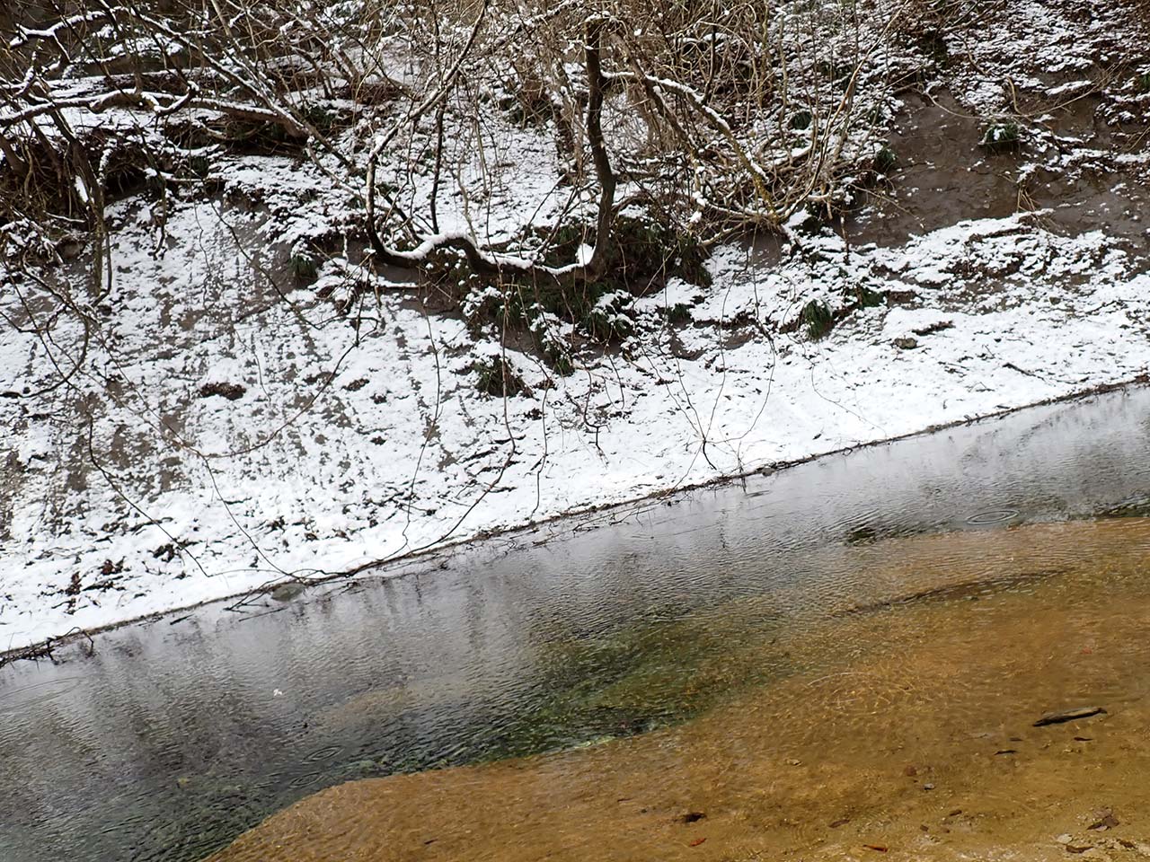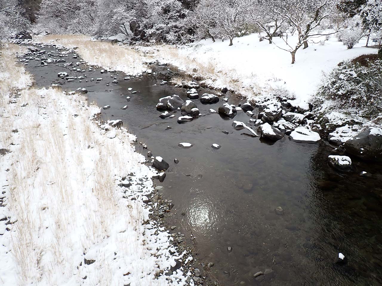ということで、以下の写真は雪景色と冷たい水が流れる里川の景色のみでゴザイマス。お暇な方はご覧くださいまし。