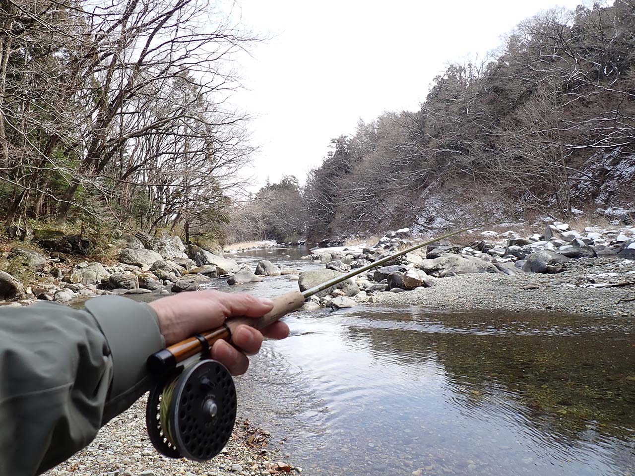 神に「お前に釣らせる鱒など無い!」と言われているようで、今回は大雪とその後の爆風+その雪が一気に溶けた雪代のお陰でな〜んにもありませんでした。せめての救いは、なんでも良いから釣りたかったので、浅瀬の端でライズするオイカワを見つけ、雑魚がいる幸せを堪能するのでありました。