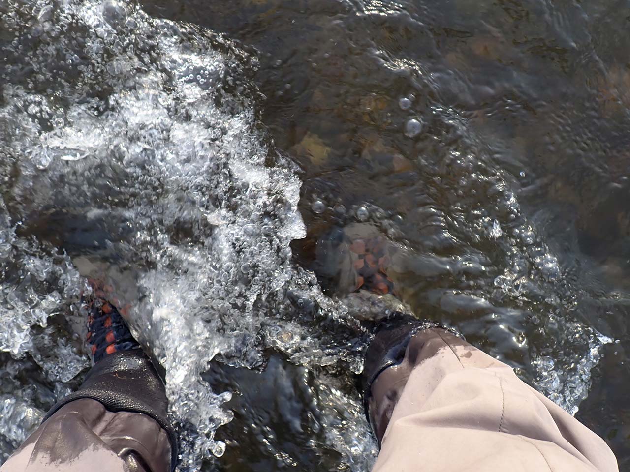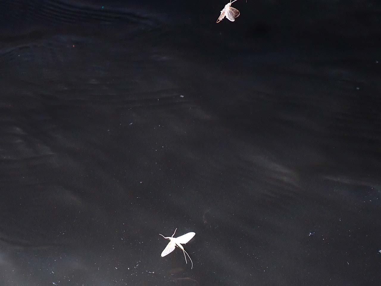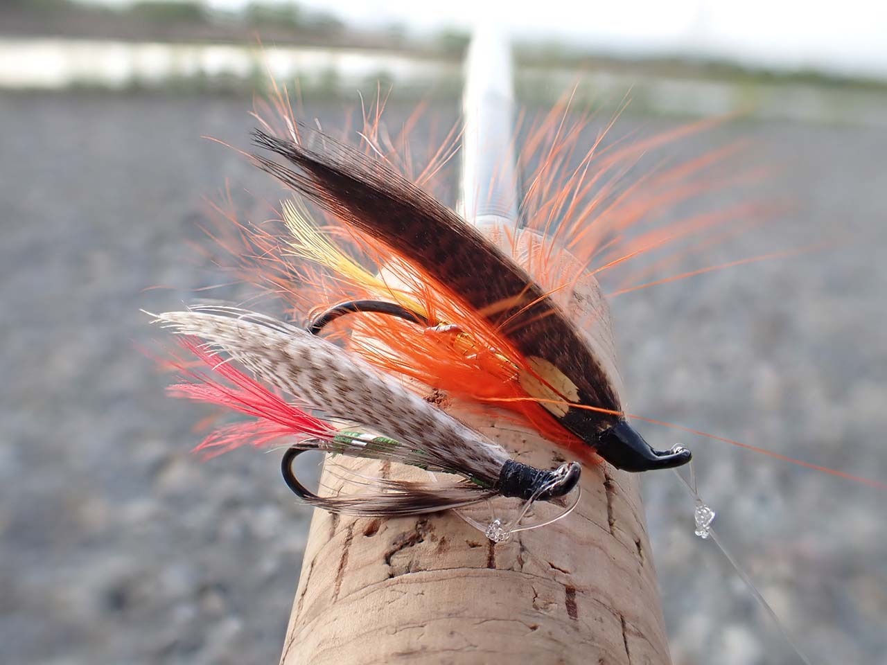 午前中は流しても流しても結果は出ず。なので一旦ウェーダーを脱いで食事に行き、再度14時からトライ。でも状況は同じでアタリはほとんどなく、掛かりが浅くすぐに外れちゃいます。フックを小さくすれば雑魚が釣れてしまうので、私はほとんど6番のウェットフライを投げてました。