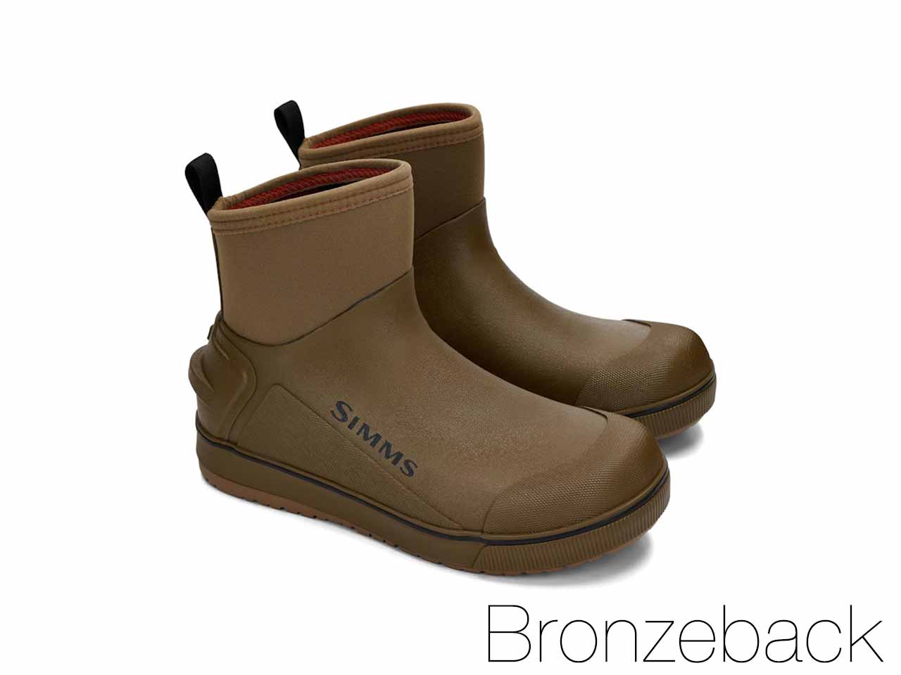 ボートデッキ上で使うシムスのブーツです。私はずっと他メーカーのしょぼいブーツを使っていたのですが少し恥ずかしくなったので、こちらのブラックに履き替えました。このブーツはビブ(レインウェアの下)から出るつま先の防寒と防水を目的としたもので、従来のロングブーツのような動きに制限がなく歩き回れます。また、使ってみて思うことはソールにフライラインが挟まらず、キャスティング時のイライラが少し減りました。2026年モデルとしてブロンズバックのカラーが追加されました。
