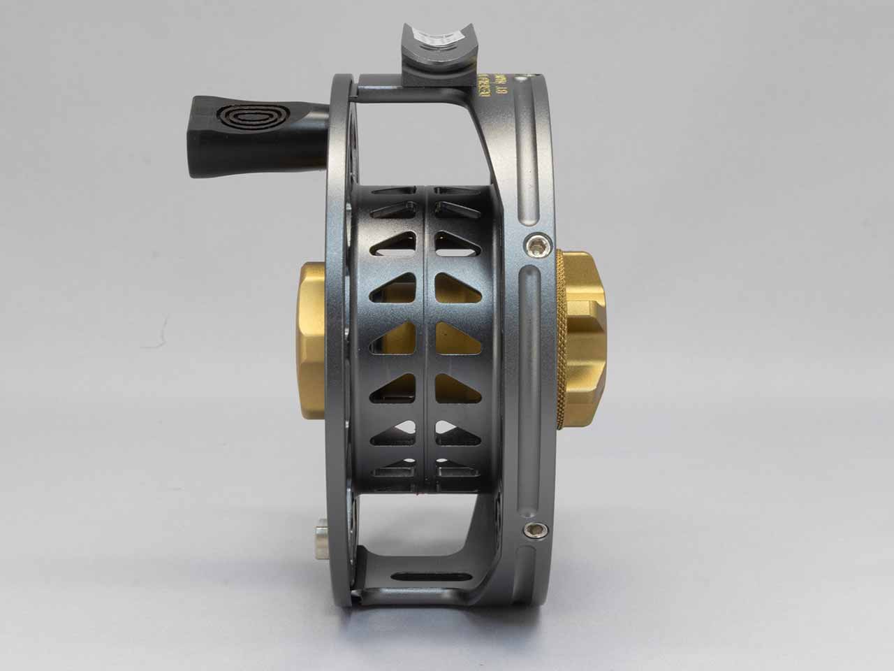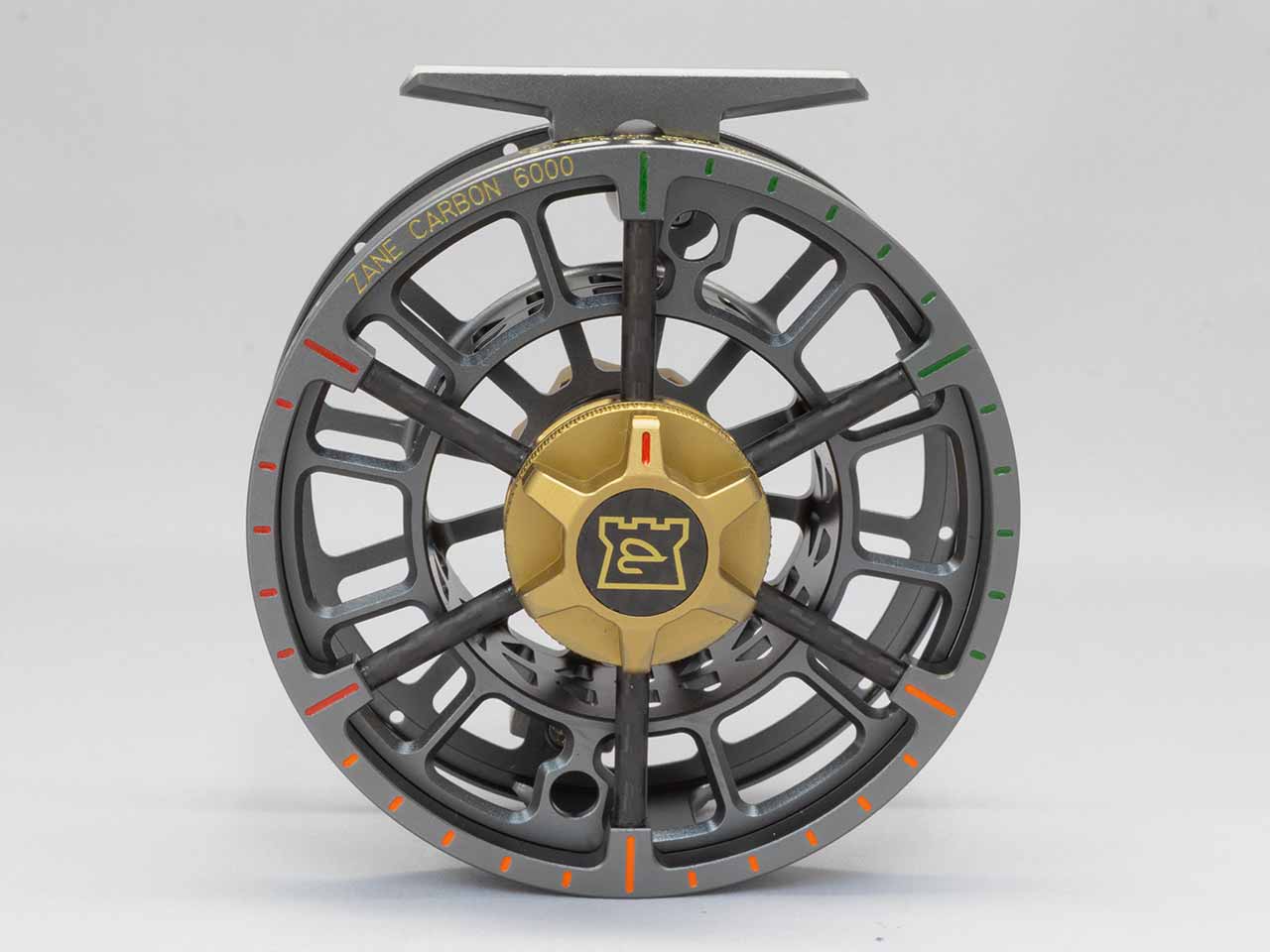 ゼイン・カーボンは、センターシャフトをカーボンで支えられた、ソルトウォーターフライリールです。密閉式ディスクドラグ内蔵の軽量なラージアーバー・リールで、340°調整可能なドラグコントロールは、魚の急激な引きに対してドラグシステムが機能し、素早く細かな調整(リール外周に時計のようなメモリがある)が可能です。その強靭なドラッグは10ポンド以上の制御力を持っています。