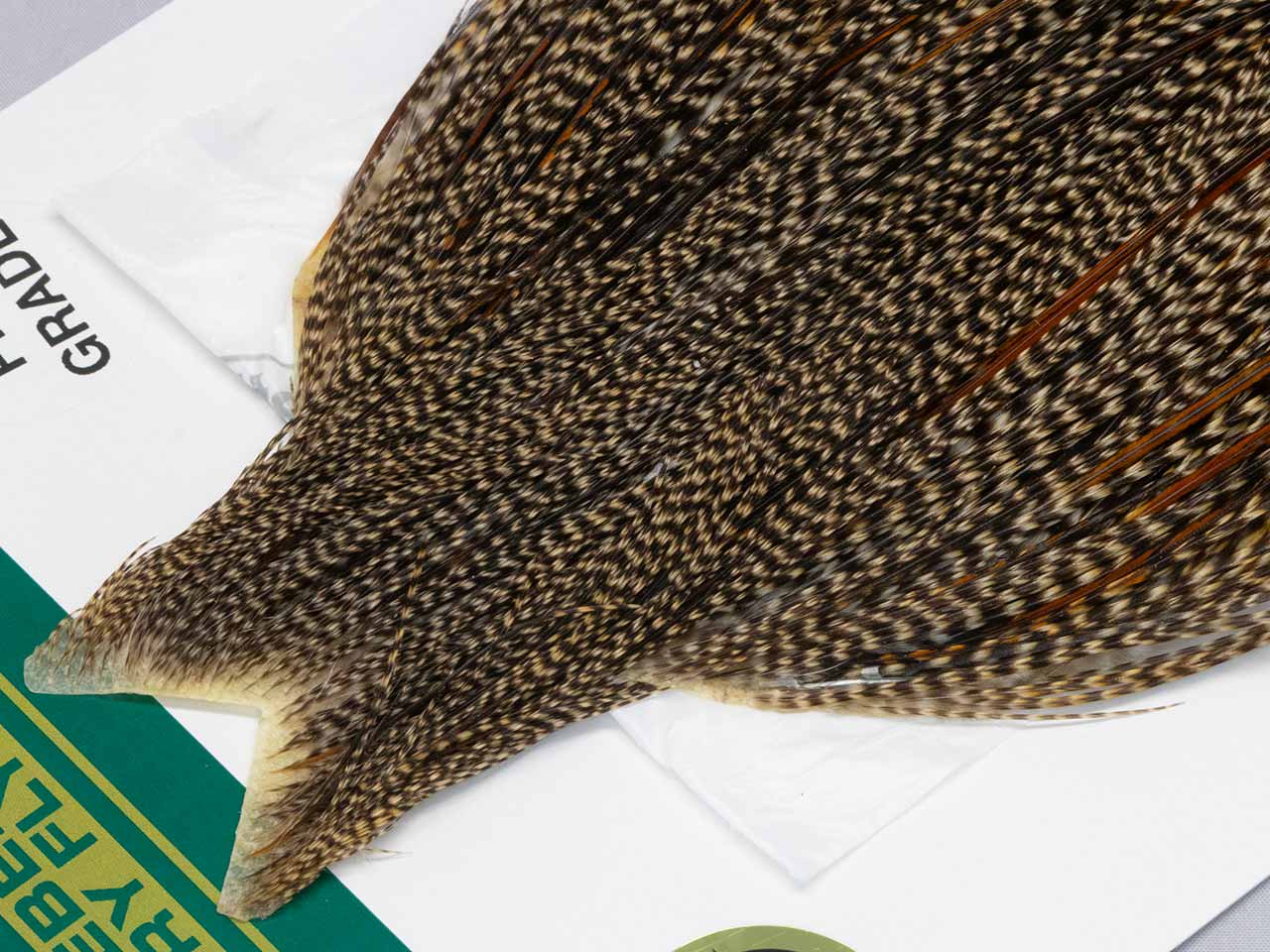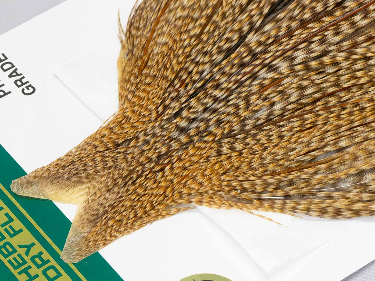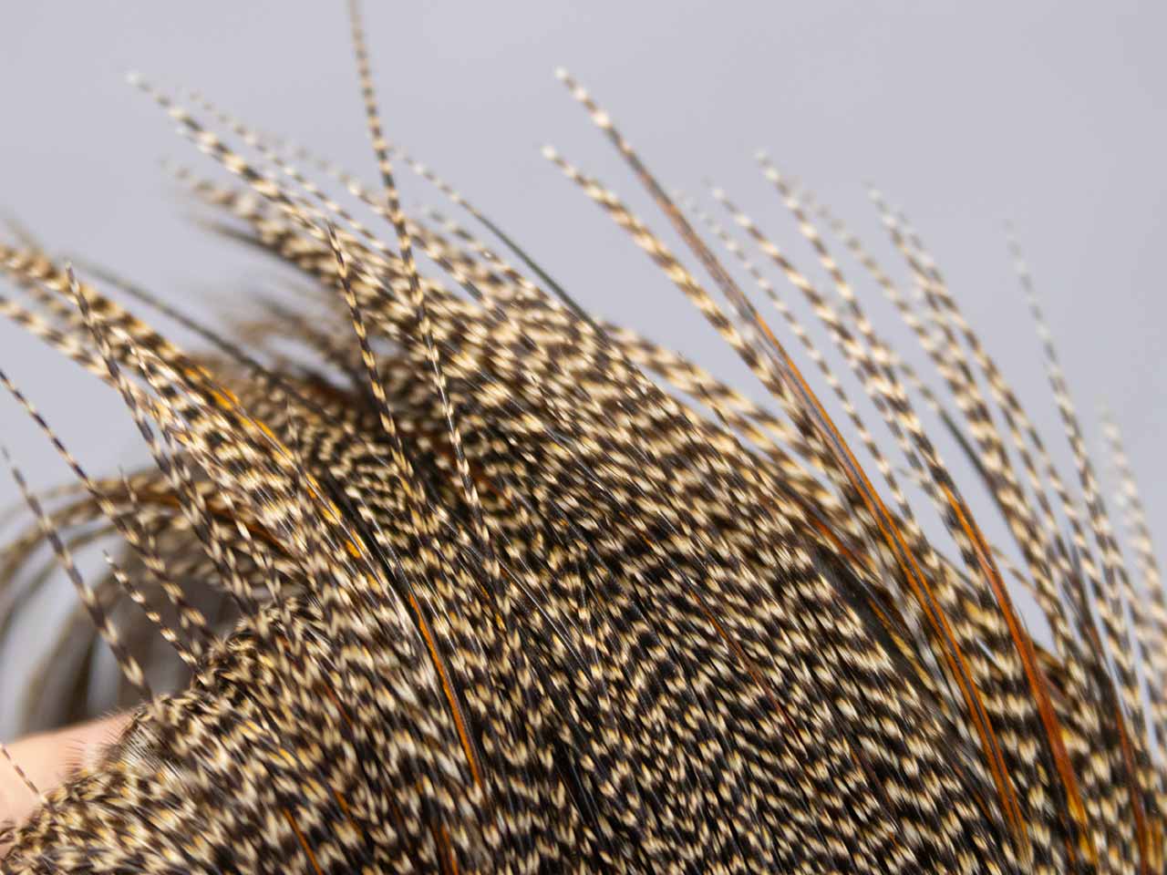 ヒーバートの特徴は鶏の大きさがホワイティングよりも一回り大きい事、それに淡い色合いのナチュラルカラー中心。今回入荷したグリズリーバリアントは名前の通りグリズリーの変わり種で、クリーに近くブラックの部分が少し薄いもの。根元がブラックとブラウンが混在するので、よりリアルさが増すカラーと言えます。ここ数年ヒーバートのハックルはホワイティング以上に入荷が少ないので、商品を見てビビッと来た方は、迷わずポチッと押すことをお勧めします。