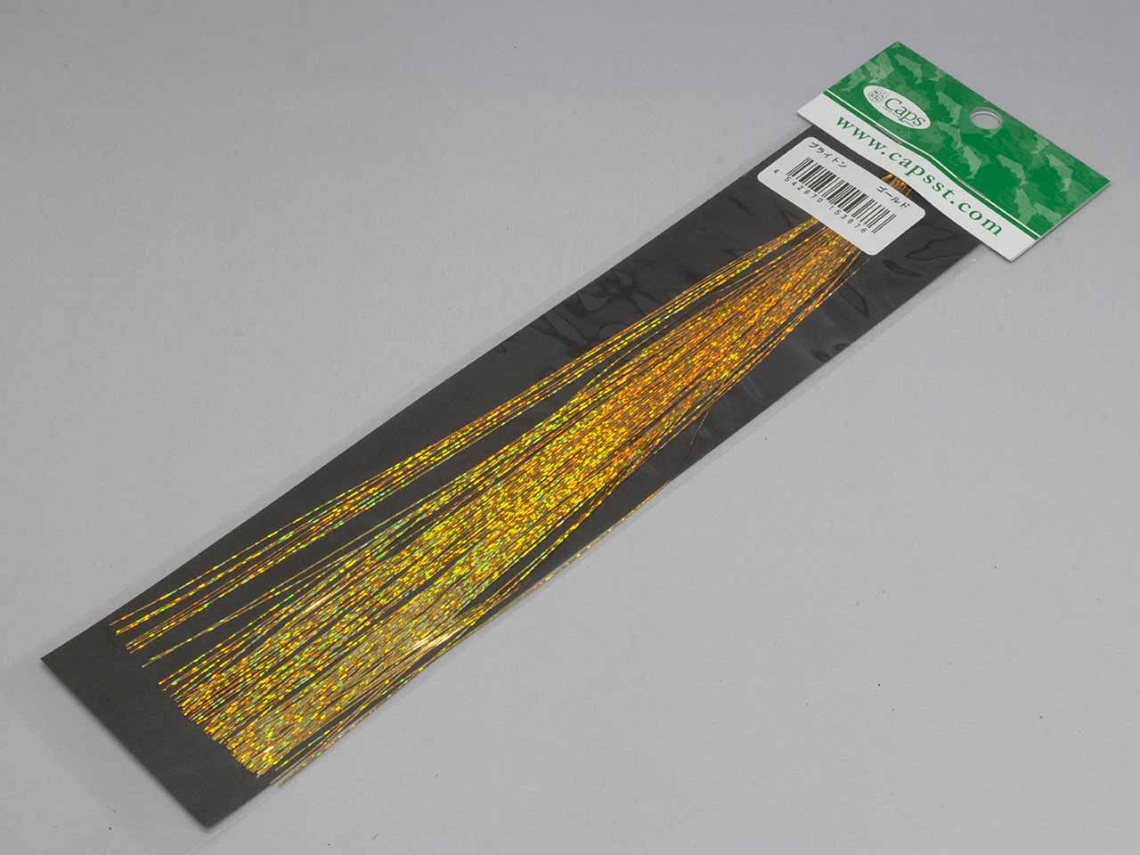 キャプス ブライトン ■Size:全長約24cm ■Color:ゴールド・シルバー・ブルー 長いティンセルテープで、複雑な輝きがあります。使い方はフラッシャブー同様に、ストリーマーのウイングやアクセント、管釣りフライのアクセントとしてお使いください。